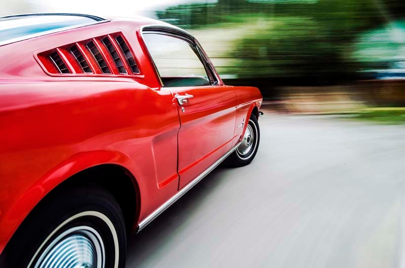 “The story of my 1965 Mustang begins in 1974 when my husband and I saw it for sale at a garage on Stockport Road in Manchester, UK. It was the car we had always dreamed of owning – a red Mustang with a 289 K-Code V8 engine. It’s a good-looking car being a 2+2 Fastback, Rangoon Red with a red interior and a four-speed manual transmission (a true 4-on-the-floor!). It was too good to miss. The car was advertised for ₤600.