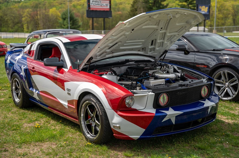 It didn’t take long for the show field to fill up and the action to heat up at Maple Grove Raceway. The big draw here is the drag strip, where you can sign up to participate in some heads-up racing over the quarter-mile track. There was also an outdoor dyno booth on-site, which always seems to attract a lot of attention from the crowd. And yes, there were plenty of vendor tents filled with new aftermarket items for your vehicle. Wheels, exhausts, shift knobs, power-adders – you name it, they were there and affiliated with American Muscle’s catalogs. Maple Grove is a big place so you needed to bring your walking shoes – but it was easy to get “refueled” thanks to a wide variety of different breakfast and lunch vendors set up there, complete with tables and chairs to accommodate hungry fans.