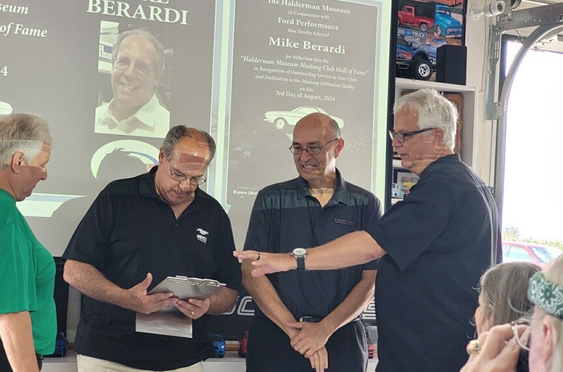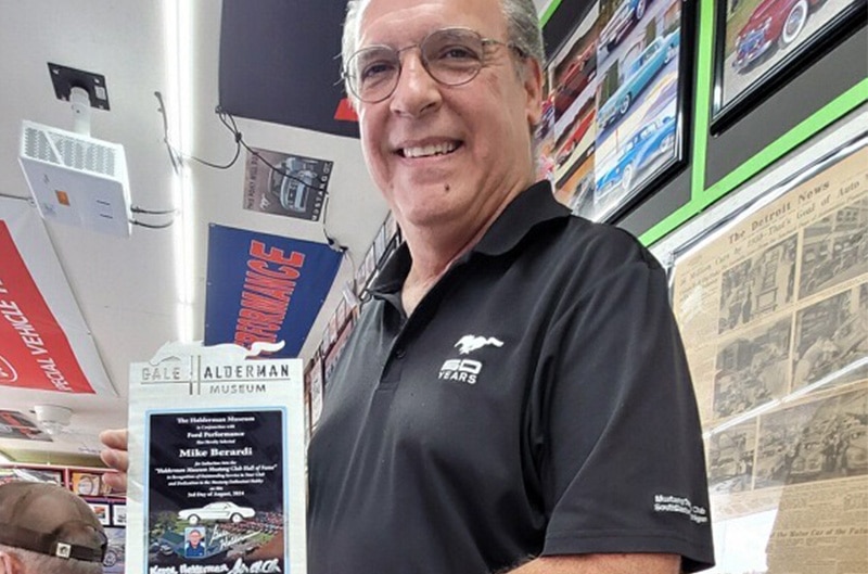 While the Kriegers were surprised by their Hall of Fame induction on that day, the final 2024 recipient of the award that came along in August was totally shocked. Retired Ford executive-turned-Mustang super-collector Mike Berardi was actually tricked into attending his induction event, held the day before his attendance at the Tri-State Mustang & Ford Club of Greater Cincinnati’s 42nd Annual All Ford Show. Berardi, Ford’s former director of Field Service Engineering, is well known for his work in and support of the hobby as well as his own Motorcity Mustangs collection. Turns out Mike was a key player in the formation and early leadership of the Tri-State club back when he’d lived in the Cincinnati area, and the club wanted to make sure he was finally recognized for his contribution. He almost fell off his chair when the Hall of Fame award was announced during the Tri-State cruise-in at the Museum that day. Everyone shared a laugh when Mike humbly accepted the award and revealed how he was tricked by his wife Sue into driving down to the museum a day before the club show (without telling him he was being inducted into the Halderman Club Member Hall of Fame)!