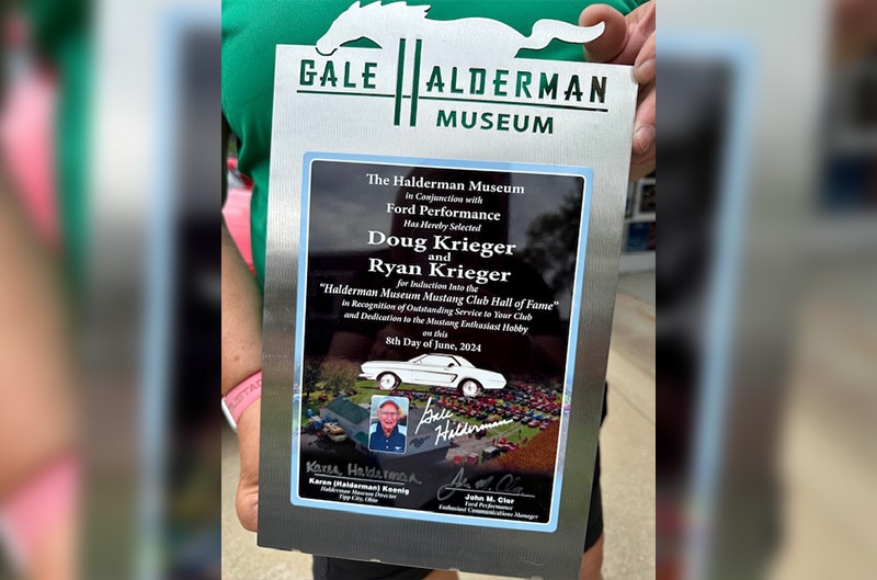 We agreed – but before we could come up with any sort of program, Gale passed away on April 29, 2020, and never got the chance to see his idea come to fruition. So Gale’s daughter Karen and granddaughter Lauren (with help from Marcie Cipriani of The SVT Store as well as our own Ford Performance Club Connect program) officially launched the Halderman Museum Mustang Club Hall of Fame late in 2021. Since that time, several club principals from clubs across the Midwest been inducted into the Hall during club visits that include a luncheon presentation by Ford Performance, a beautiful award to take home and a special plaque mounted on the main beam in the museum barn for the world to see. There’s nothing else like it.