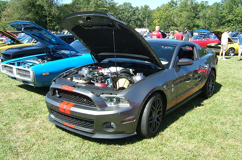 Usually, the judges do not look at our cars for several hours, so I took the next hour and a half and recleaned everything. It amazes me how a car that sits in a garage all week gets so dusty! And those beautiful polished-aluminum wheels? They are like brake dust magnets, and always require cleaning once I park on a show field. But the weather was perfect with light breezes and no threat of rain, so touching up my car was pleasant duty. Occasionally a spectator stopped to chat. In fact, I had a long discussion with one person who was looking to buy a Fifth-Gen V6 Mustang, and he wanted to know their differences. By noon, the jackets were off and we were back into warmer weather!