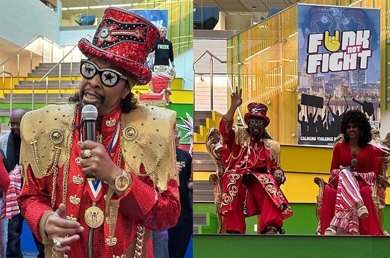 Bootsy is a legendary bass guitarist who started off with James Brown in the early 1970’s before joining the Parliament-Funkadelic collective and collaborating with other musicians as a performer, singer and songwriter in a variety of genres over the years. In addition to the Funk Not Fight initiative, Patti also oversees several community efforts in their hometown of Cincinnati, including “Kyle’s Fund,” an endowment at a Greater Cincinnati hospital that provides medications and education for patients who can’t afford them, and “Grooveminte Girls,” a project that helps girls become more confident and defend against bullying.