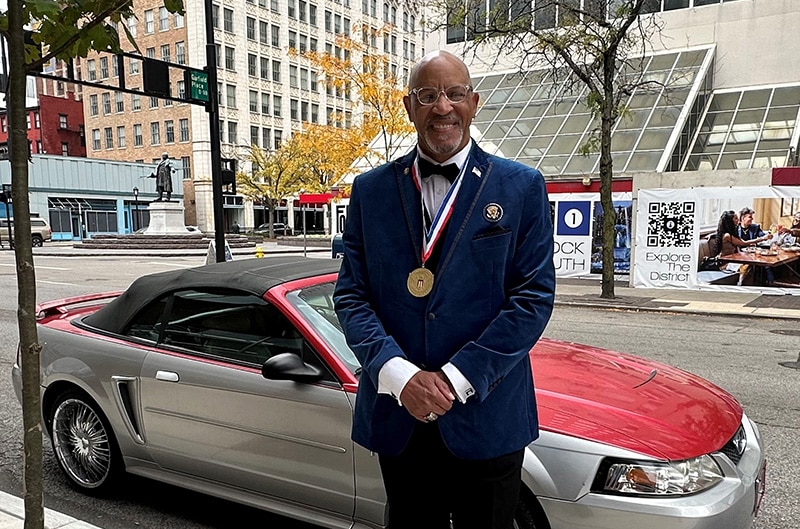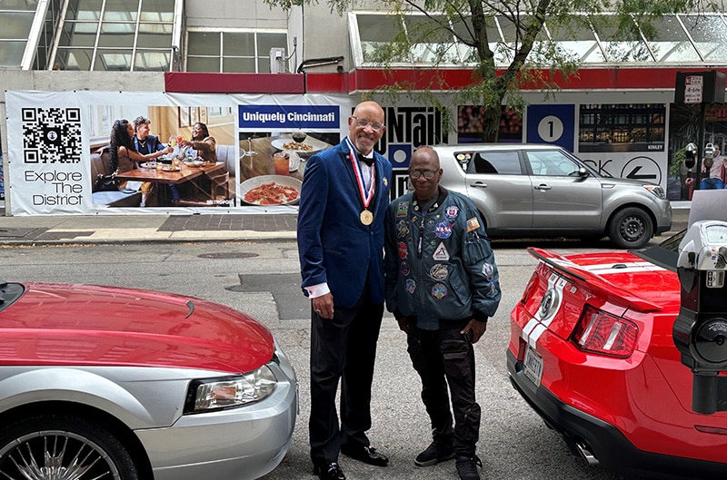 Ford Performance heard about a special late-October 2024 event honoring Bootsy and Patti taking place in Downtown Cincinnati from Bill Montgomery, director of team called “Hidden Pioneers” whose mission is to lead disconnected youth on a career path in the transportation industry. Hidden Pioneers is part of the “Prime Motivation” charity program, bringing interactive motivational experiences to disadvantaged students. Bill had worked with Ford Performance Club Connect on the Emeline King award event, and with the Collins’ connection to Mustang he correctly believed that coverage of Bootsy’s event would be another good fit for FordPerformance.com. Except this time, Club Connect decided that perhaps local Mustang club members – specifically Tina and Mike Scheafer of the Queen City Mustang Club – would drive their own Mustang to experience the event in person and get the story and photos for FordPerformance.com while they were at it.