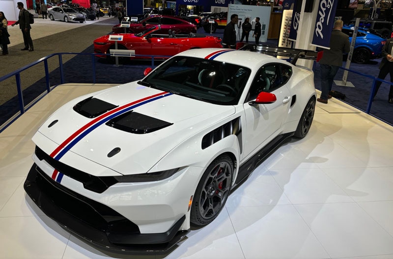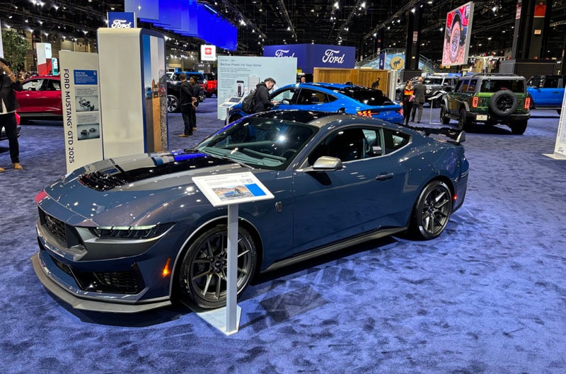 Manual transmission fans still wanting to row through gears would not be disappointed. Parked right behind the GTD was the 2025 Ford Mustang Dark Horse. The floor model on display was spec’d with a TREMEC six-speed manual transmission that included a unique titanium shift ball and features rev-matching and no-lift shifting. The Dark Horse features the venerable 5.0-liter V8 engine that produces 500 horsepower, and 418 pound-feet of torque. If you are an automatic transmission fan, you would not be left out as the 10R80 SelectShift automatic transmission is available.