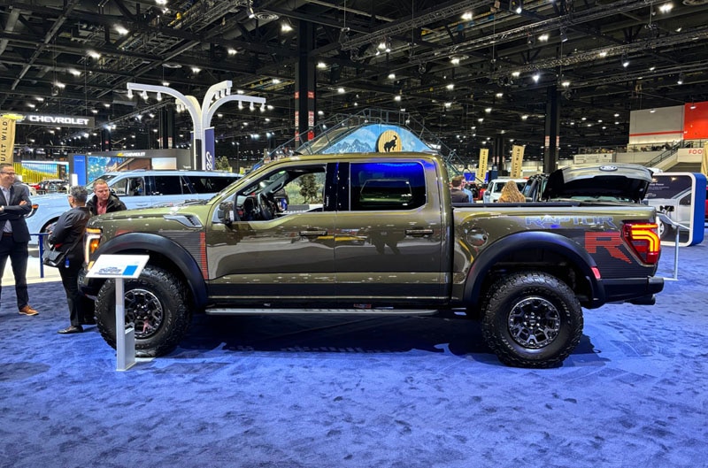 Ford trucks also made a strong showing this year with the 2025 F-150 Raptor R which was definitely a highlight here. The F-150 Raptor R packs a 5.2-liter supercharged V-8, making 700 horsepower and 640 pound-feet of torque. The Raptor R includes Fox Racing Shox, 37-inch all-terrain tires and seven drive modes (Normal, Sport, Tow/Haul, Slippery, Off-Road, Baja, and Rock Crawl). New for 2025, is a new color called Space White Metallic