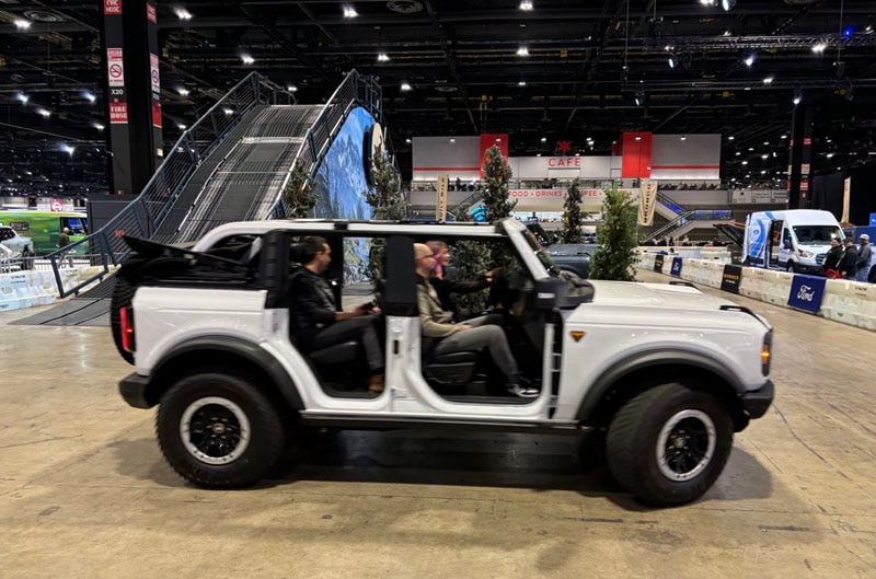 If you are a Ford Bronco fan, you would be in for a treat at the auto show. Back again this year was the massive Bronco Adventure experience. This test track was one of the biggest in the show and sprawled across the entire back of Ford's display, inviting attendees to experience Bronco's off-road prowess. This year included two different Bronco model lines – one for the regular Bronco and another for the Bronco Raptor R. You don’t even have to guess which line was the longest. There was also a Mustang Mach-E Circuit. The Mustang Mach-E SUV’s track showcased its electric agility. Attendees weaved through twists and turns and got the chance to feel the future of electrification.