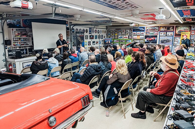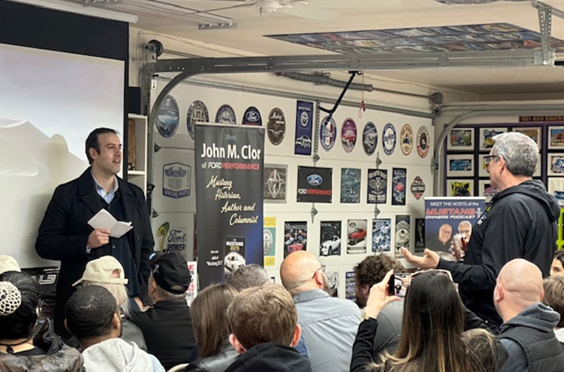 Last month, the group announced a premiere screening event for their “60th Anniversary Mustang Spec Commercial” at the Gale Halderman Museum in Tipp City, Ohio, about 20 minutes north of Dayton off Interstate 75. Halderman was the principal designer of the original Mustang, and his daughter Karen now manages the little barn museum that her late father had set up to pay tribute to the Mustang. About 70 Mustang enthusiasts had gathered back on March 9th to see the short film, meet the creators, attend a “Mustang 60 Years” presentation by Ford Performance Club Connect, tour the museum and get a commemorative Mustang 60 Years poster just for being there.
