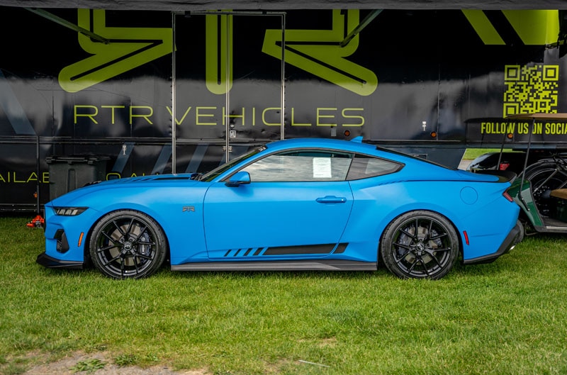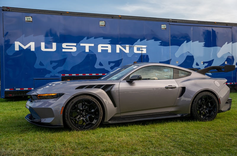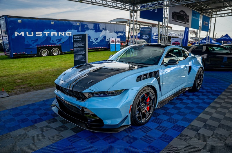 The last surprise Ford had up its sleeve was a new package unveiling for the 2026 Mustang called the Mustang FX Package. This new offering was inspired by the styling of Fox Body Mustang. Ford strategically placed a 1993 SVT Mustang Cobra from its Heritage Fleet at the front of the FX display for unsuspecting Ford enthusiasts to already ogle over that beautiful and well-preserved example of the Fox. After the Saturday FX reveal, the blue Fox Body Cobra gained a companion at the front of the display featured in a very similar 2026 blue color, Adriatic Blue Metallic. With the 2026 FX’s contrast stitching on the seats, dash, doors and steering wheel, paired with the body color of the car along with the plaid seat design, it really accentuate this special package, and white-silver accent also draws a retro styling cue for enthusiasts who really wanted a factory throwback to the Fox.