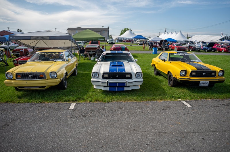 With nearly 3,500 registered show vehicles on display, Mustangs have grown to more than 2,000 of that number – forcing the Carlisle Ford Nationals staff to devote a substantially large portion of the Fairgrounds to Mustangs. The main show field is divided into different sections for each generation of the iconic pony car, and then subdivided into certain years of the cars production runs during that generation, as well as stock or modified entries.