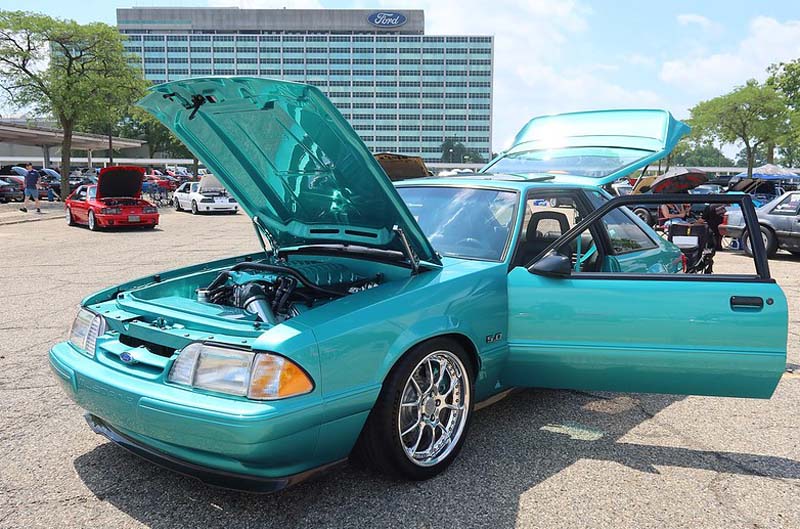 DEARBORN, MI – The all-Fox Chassis show known as the MotorCity FoxFest (MCFF) returned to the iconic Ford World Headquarters for its third-annual show in Dearborn, Michigan, earlier this month. But the MCFF isn’t just about the Saturday Show Day – it has become a four-day celebration. From Wednesday through Friday, attendees enjoyed a series of special events, including a private tour of retired Ford exec Mike Berardi’s Mustang Collection, a Meet & Greet at Dearborn’s Ford’s Garage restaurant hosted by Five O Asylum, and a stacked Friday lineup featuring an MRT Cars & Coffee, the “Run to Hell” cruise to Hell, Michigan. and an evening hangout at 3D Detroit capped off with a cruise down famed Woodward Avenue.