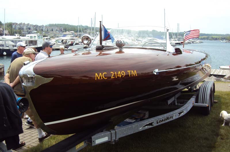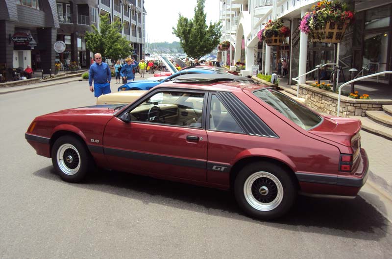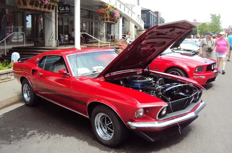 The dozen or so Mustangs on display drew plenty of attention, as did an adjacent collection of various 57 Ford models that led showgoers down the street and into the marina area where numerous rare, classic and exotic rides stretched all the way to the docks. There, classic restored wood boats sat on custom trailers for inspection. It was all like a picture postcard. We brought along our camera to take a few photos to share with you here, and help us document this celebration of the Mustang, of MOCSEM’s 50th anniversary year, of the contributions of Hal Sperlich, and of the memorable summer getaway car show the we got to experience in beautiful Bay Harbor Michigan. Enjoy!
