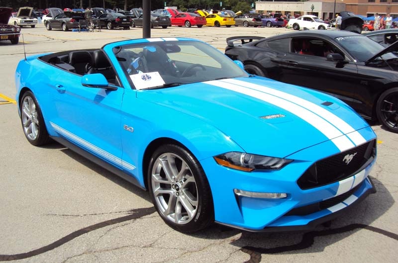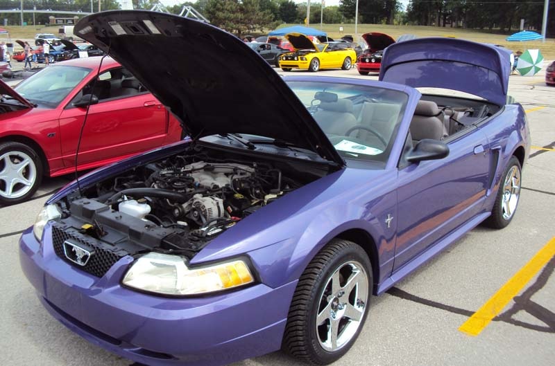 A few emails later and it was all worked out. We drove down to the show in mid-July to set up our Club Connect display tent and talk Mustangs for the day as well as give away Mustang posters and hatpins and the new (Brittany Blue!) Ford Performance wristbands. As you might expect, the club’s 42nd annual show had all the requisite attractions, including free admission, door prizes, raffle items and 50/50 drawings. (Proceeds from the event go to help fund a scholarship that is awarded to an Ivy Tech Automotive Technology student every year – how cool!)