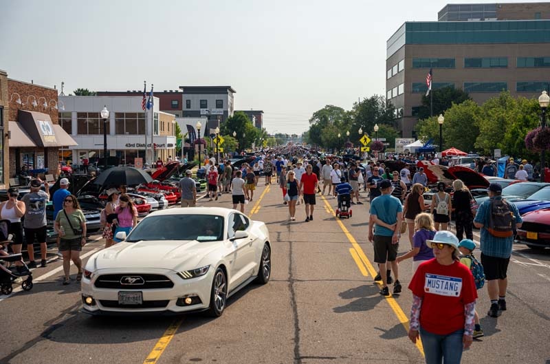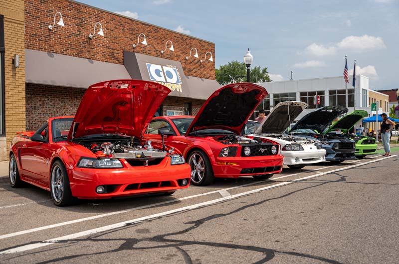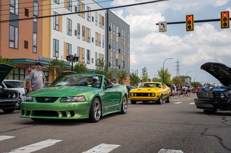 Well, it’s actually a street and not an alley. But Mustang is such an important icon for Ford Motor Company that a whole road that intersects with Woodward at the beginning of the cruise route gets blocked off to allow Blue Oval enthusiasts a long stretch of pavement to display their beloved Mustangs. With Mustang Alley parking on a first-come, first-serve basis, Mustang owners start pouring in for the closest parking to Woodward as early as 4 a.m.! There are Mustangs lined down adjacent city streets waiting for entry onto East Nine Mile Road in the city of Ferndale that is magically transformed into Mustang Alley each year. A flood of the iconic American pony cars enters the roadway at 8 a.m. and are all slowly guided to parking spots on both sides of Nine Mile Road by the Mustang Alley volunteers.