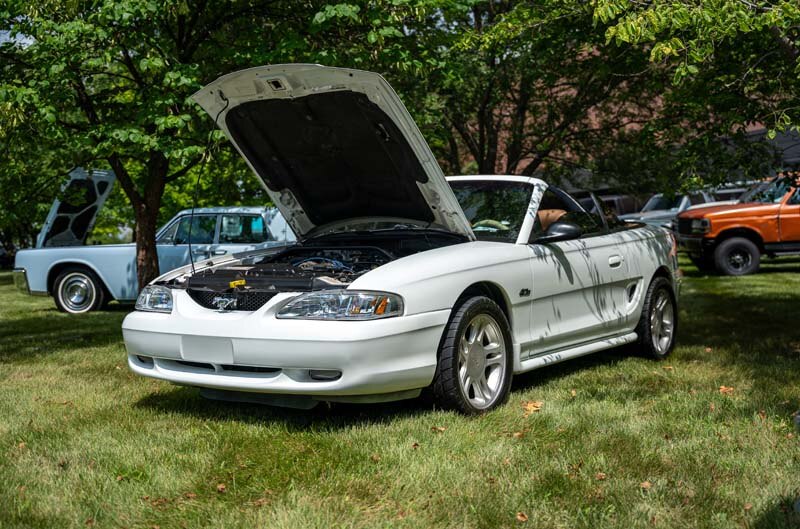 As expected, it paled in comparison to Glickman’s old PDC show in size and scope, but it did serve to offer a similar eclectic mix of vehicles that the folks who work at the Ford Research and Innovation Center have an interest to own, including some from Brand-X. Some of the rides we saw on display there included an original unrestored 65 Mustang notchback with vibrant red interior. We also saw a gleaming pair of red SN95 Mustangs that included a very clean SVT “Terminator” Cobra. The vibe here was laid back while we strolled along the lawn next to the RIC building. We came across a variety of different old-school F-Series trucks and Broncos, and we couldn’t miss a pair of white SN95s, one of which was a rare, regional Woodward Dream Cruise Edition Mustang. (If you happen to know who the owner is, email us at ClubHub@Ford.com, as we’d love to do a story on that car!).