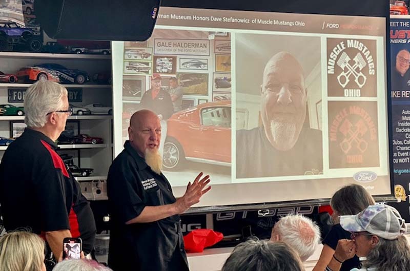 Last fall, the Muscle Mustangs of Ohio club decided to nominate their club principal, David Stefanowicz, for the special award. After Karen and Lauren approved the nomination, they set a date for the second weekend in September for the club to take a road trip to the museum for their special cruise-in and Hall of Fame award presentation to honor Dave. They couldn’t have picked a nicer day, as the weather was nearly as awesome as the many club-member cars that made the drive. The grassy back lot at the barn featured Mustangs of all types and years – and some of the even received special award clings that both the Haldermans and Ford Performance chose as their favorites.