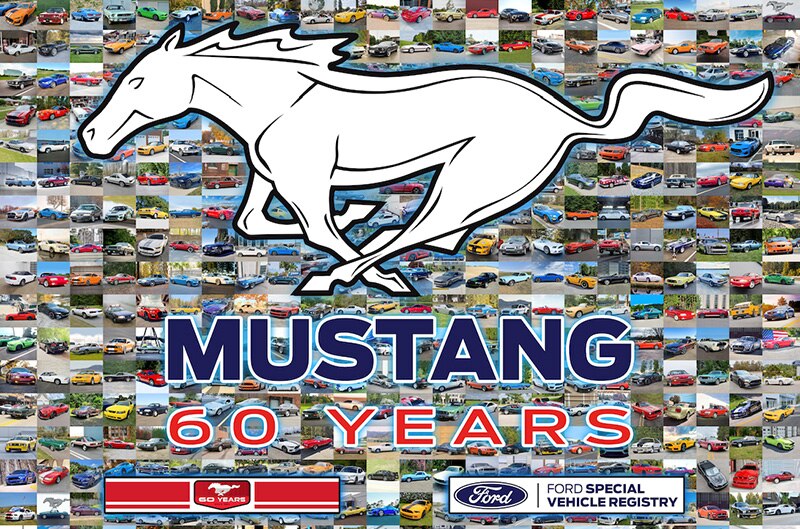 You may have seen it at Mustang shows and events across the country this year – the exclusive Mustang 60 Years mini-poster produced by Ford Performance Club Connect and the Ford Special Vehicle Registry. This full-color 18x24-inch mini poster commemorating the 60th Anniversary of the Ford Mustang features hundreds of photos of various Mustangs submitted by owners in the Special Vehicle Registry, and it has only been available at shows and events where Ford Performance Club Connect or the Ford Special Vehicle Registry has been in attendance on-site. Up until now, that is. Waiting in line is no longer necessary to get this one-of-a kind Ford Mustang 60th Anniversary poster – they’re now available for purchase via our own FordShowParts.com website. (Yes, the same place you can get replica window stickers and official Ford Certificates of Authenticity for your specialty Mustang or SVT vehicle, among other unique stuff. To order your poster, simply click on this link – https://fordshowparts.com/products/60-years-mustang-poster-event-exclusive. The Mustang 60 Years poster is $15 while supplies last, but you can add up to 7 pounds of other items that are offered on the FordShowParts site for $10 flat-fee shipping. This special shipping deal is for a limited time, so get on the FordShowParts.com website today and score this official Mustang poster and other cool Ford stuff now!