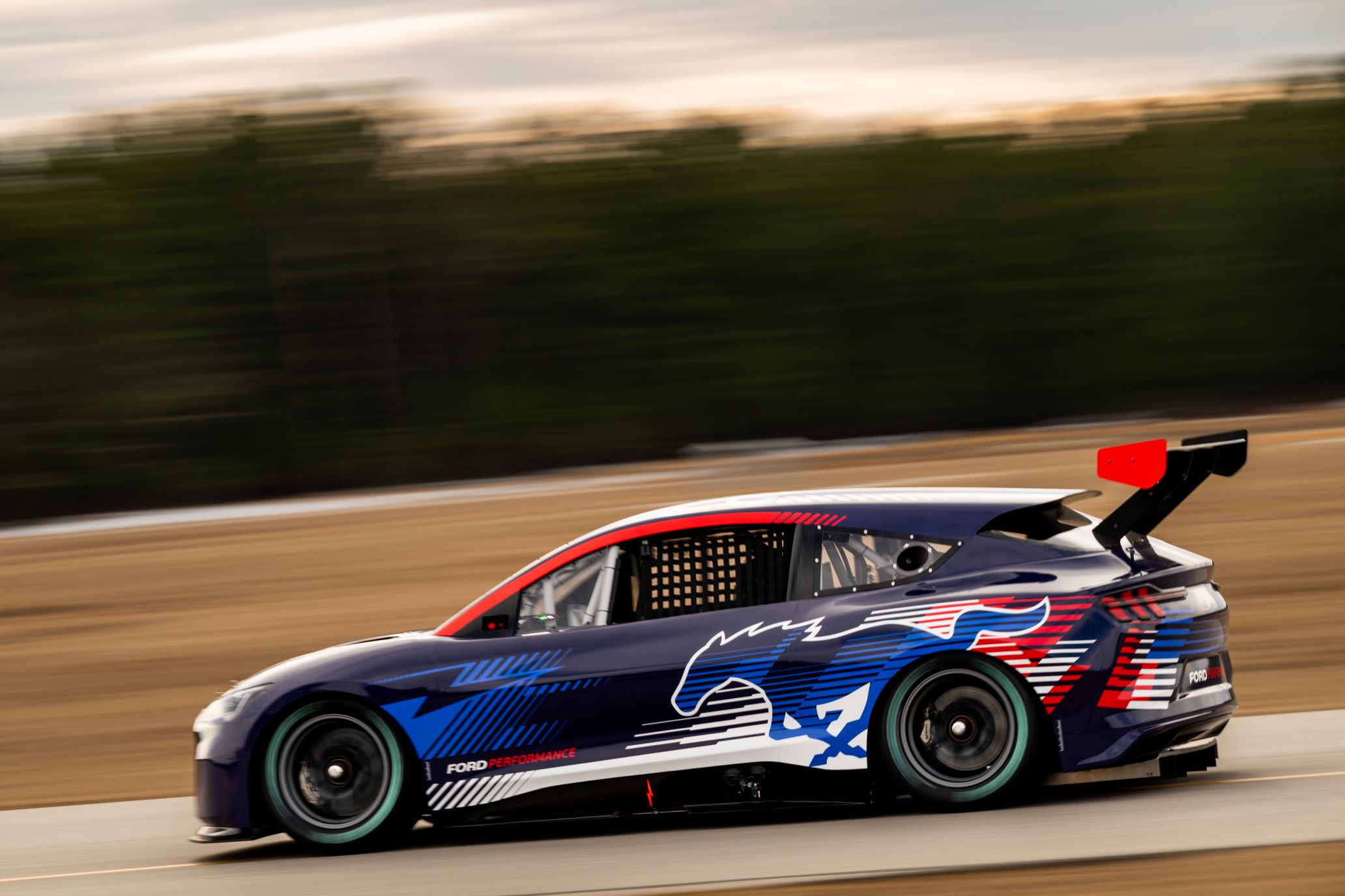 This 100% electric racer is the latest demonstrator to join the Ford Performance family following SuperTruck, SuperVan 4.2, Super Cobra Jet 1800 and others. The new Mach-E demonstrator features components from the current Cup Series car including suspension, brakes, steering and wheels. It also features three motors, a full carbon fiber tub, and a 78 kWh battery.