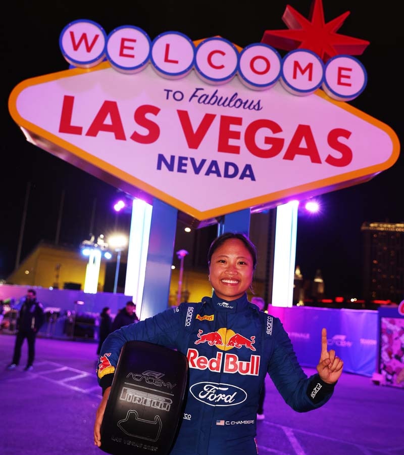 - Chloe Chambers raced from pole position to victory lane in the second race of the weekend on the Las Vegas street circuit. Chambers used her final F1 Academy start to clinch third-place in the season-long championship.